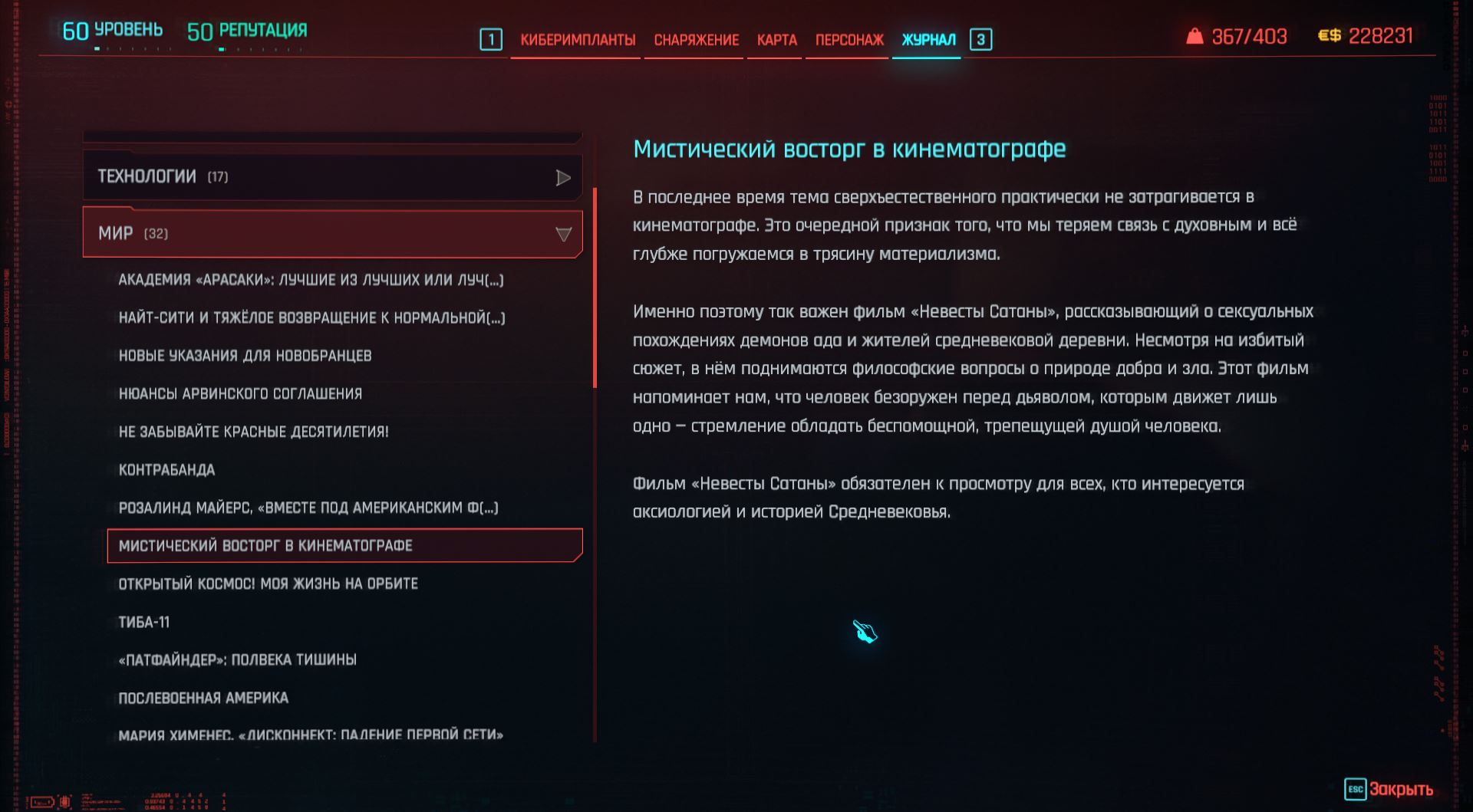 cyberpunk 2077 Мистический восторг в кинематографе Невеста Сатаны.JPG