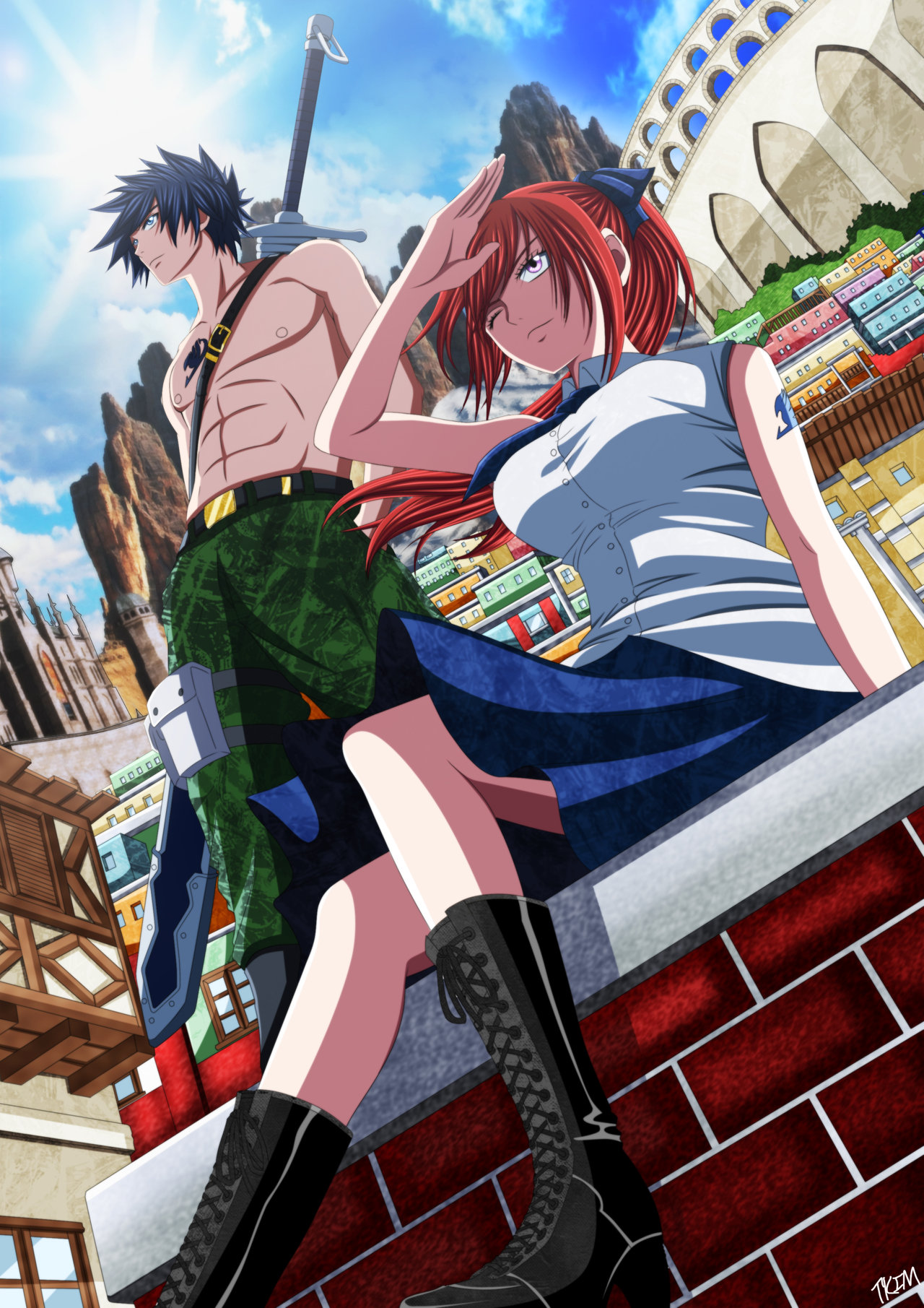 fairy tail, грей фуллбастер, колоринги, эрза скарлет