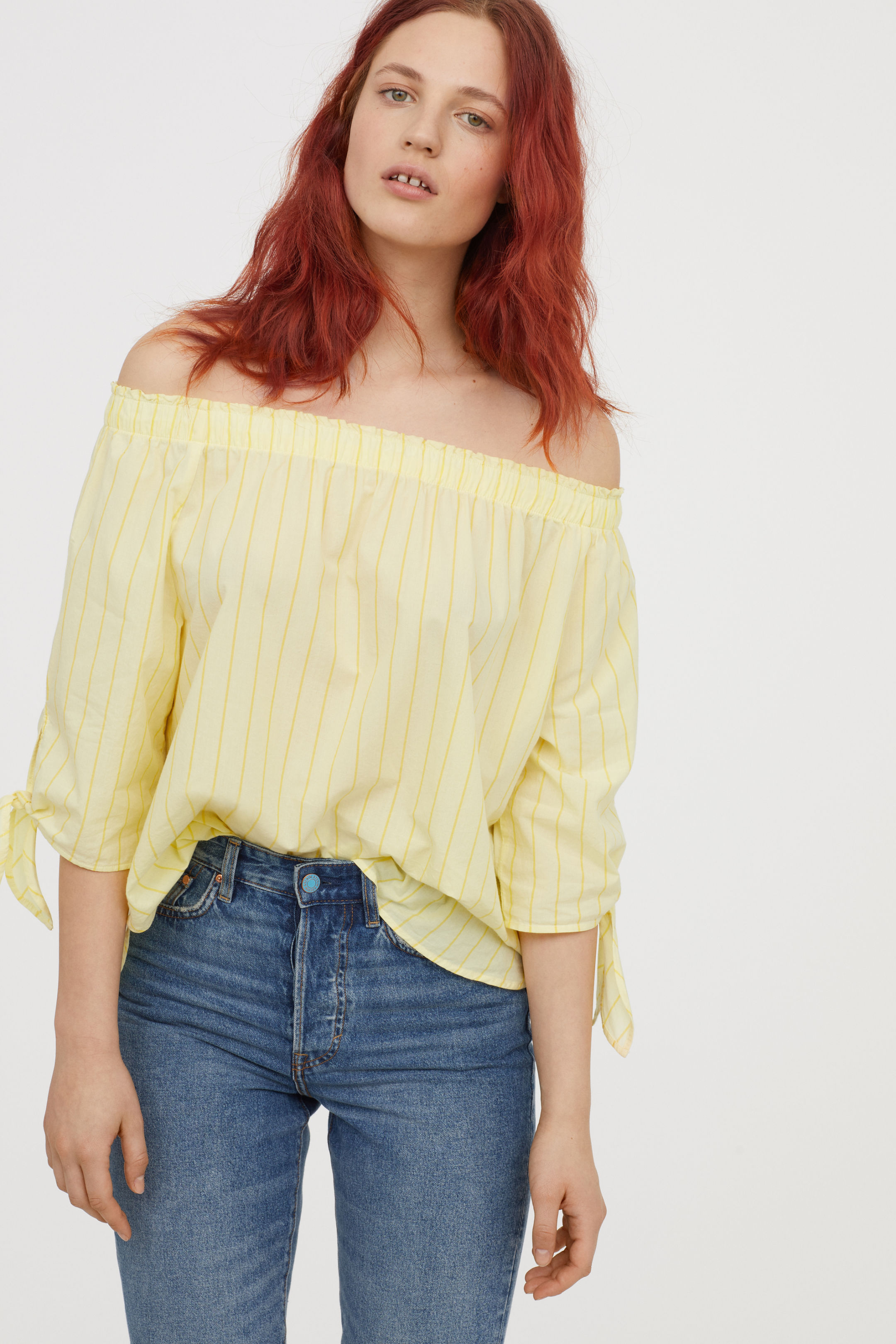 Блузка с открытыми плечами 36 Бледно-желтый Полоска2.jpg